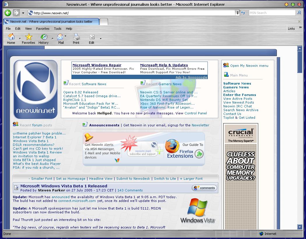 Zeitgeist Posted July 28, 2005 Share Posted July 28, 2005 (edited) It's alright. The Links toolbar is flaky with width/spaces. It seems a lot faster with rendering and the new addon management is better, I hope there is some nice addons that come out (adblocking, etc.) I'm glad you can now middle-click to open a new window (or tab) but I disabled the tabs, they seem so ugly. I disabled the phishing filter too, seems kind of pointless unless you're an idiot. Edited July 28, 2005 by Zeitgeist Link to comment Share on other sites More sharing options...
