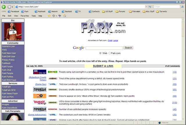 Zeitgeist Posted July 30, 2005 Share Posted July 30, 2005 Microsoft NEEDS to stop designing interfaces that are bloated! 586293295[/snapback] "They" didn't make it bloated, you did. It's obvious you have all kinds of ugly junk all over the place. I've attached my "bloated" IE window. Link to comment Share on other sites More sharing options...