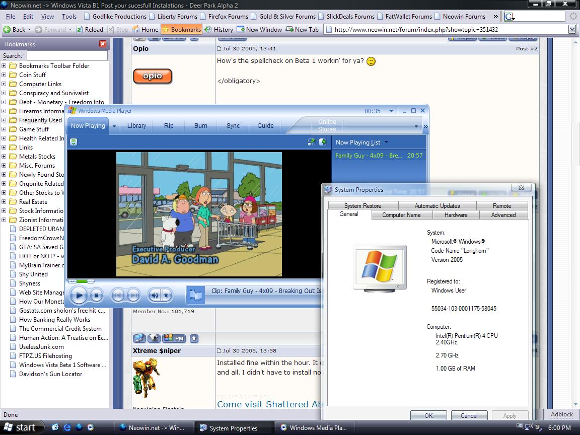 Hiiragi Tsukasa Posted August 3, 2005 Share Posted August 3, 2005 (edited) Installation took 3 hours and I only had problems with the sound which I fixed by installing the drivers for them. Glass and everything worked out of the box, expect blurring, but that was fixed after I downloaded the nVidia drivers. Beowulf IIWindows XP Pro SP2 & SuSE Linux 9.2 & Windows Vista Beta 1 // ASUSTek A7V600-X VIA KT600 Chipset AMD Athlon XP 2800+ Barton (2.08ghz) @ 3200+ Barton (2.25ghz) nVidia Personal Cinema Geforce FX 5700 128MB AGP 8x 1024MB PC2700 DDR-SDRAM // 160GB HDD 7200RPM // DVD Dual Layer +/- RW 16x Onboard AC97 5.1 Surround Sound Audio // Onboard Gigabit Ethernet[/b] Beta 1, like 5048 was a lot more stable than Xp for me even after doing pretty much all the stuff I do on Xp. At times, like downloading tons of images in Firefox, it takes significanltly less time between downloading images, and other times, like multi-tasking, or RPG Making, it gets choppy even with Aero Glass off, but Aero Express seems to be choppier than glass. Running Aero-Glass on 1600x1200x32bbp@75hz with no crashes. Edited August 3, 2005 by Kenta Link to comment Share on other sites More sharing options...