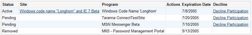 Dane Posted September 4, 2005 Share Posted September 4, 2005 Available ProgramsThis page shows all the programs that you can participate in. For each program, you can see the nomination start and end dates, view program details, or apply for the program.. (no programs available) <insert finger here to Microsoft> Link to comment Share on other sites More sharing options...