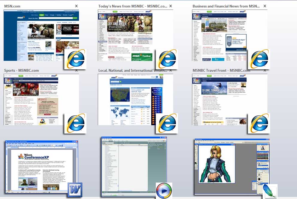 BGil Posted September 30, 2005 Share Posted September 30, 2005 I don't see the scaling as a problem because we are only trying to identify the window not read its contents. If someone needs a larger preview to identify a window then there should be a rollover enlargement. When the user rolls over a window or hovers over one the window enlarges a bit. I think that would work. Either way, you have a both the application icon and the title of the window to help you identify each and every window. Ideally, you can still use the scroll wheel to move the selector from window to window but this make it much easier to aim when there are many windows. I don't know how many times I've been trying to use Flip 3D and just overshot the window I was looking for. It gets quite annoying after a while. Please excuse the "extremely" crude mock-up. It's missing a few parts like the titles for the new windows and such but take notice at how easy it is to pick out each and every window. Window thumbnails laid out in such a fashion can scale much more easily to the demand of power users who often have dozens of windows open. Link to comment Share on other sites More sharing options...