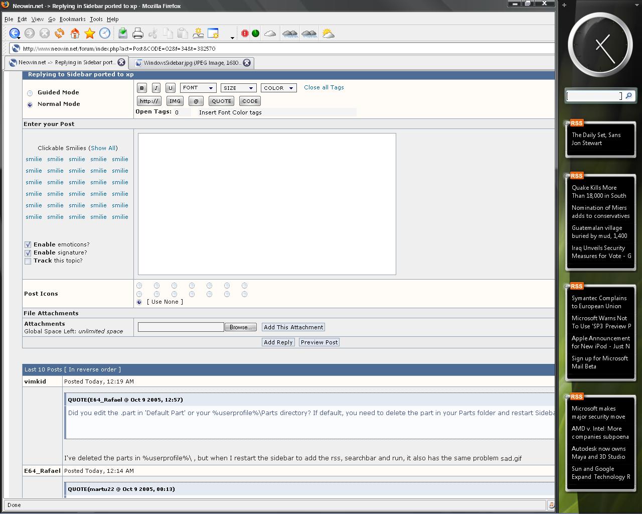 sachleen Posted October 9, 2005 Share Posted October 9, 2005 The sidebar shows up fine, but there is nothing on it. I click hte + button, but its still blank. I have the sidebar.exe, the emu and xmlrw.dll files, and the 4 *.part files in a dir and it doesnt show any widget thingys in the sidebar. Link to comment Share on other sites More sharing options...