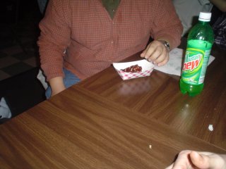 Ji@nBing Posted February 28, 2006 Share Posted February 28, 2006 spicy is good. Extreme spice, while not tasty, is a nice challenge. There's this place in Johnstown,PA called CK's Wings 'n Things. I seriously doubt there is any place with hotter food. Here's the Nuclear Hell 1 challenge (1 or 2 million Scoville Units) Just after the one wing then outside I was sick for a couple days, but it was fun. Whats really sick is that there is a Nuclear Hell 2, someone ate 12 NH1 and got NH2 and could only eat 1 bite, but there's still a Nuclear Hell 3 :laugh: Well there's ur problem. You had pop and water to wash it down. For REALLY spicy things, you need a dairy product like milk or yogurt. Water or pop are only going to make things worse!! :laugh: Link to comment Share on other sites More sharing options...