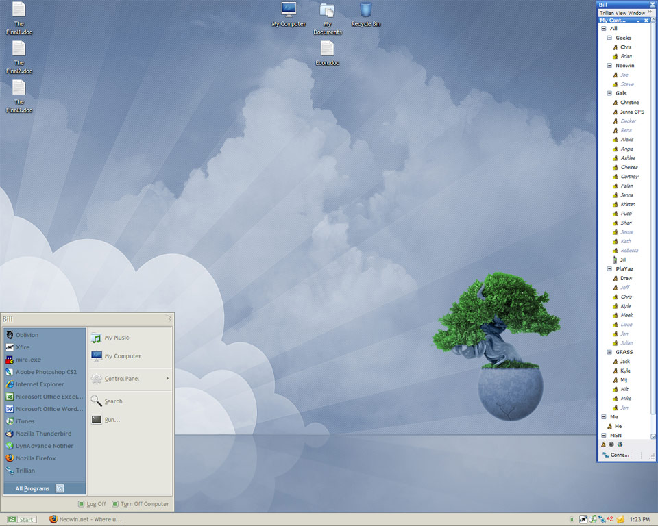 Billthy Posted April 25, 2006 Share Posted April 25, 2006 here be mine. I usally dont have that many icons on my desktop but i have finals :angry: so i have 3 papers due and a study guide so just ignore those Link to comment Share on other sites More sharing options...