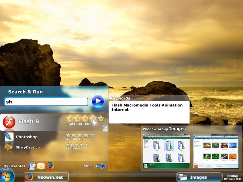 Warappa Posted June 9, 2007 Share Posted June 9, 2007 (edited) Hi all! Here is a little mockup I tried! Description: Window Group: I think it would be nice if you could group your windows by dragging them together (not the automatic grouping XP tries ;) ) Search&Run: Performs a search on your harddrive (just Program Files directory?). You can rate your favorite entries to get them more up in the list the next time you search. Also through the "T" icon you can add keywords that are used to find your Files. Alternatively you can drag your favorite files in the "My Favorites" panel to get quick access to them. The "More" button would open something that would be like your Start->Programms menu is today but, of course, more "romish" ;) . I hope you like it! Warappa PS: Inspired by ADvert's mockup :happy: Edited June 9, 2007 by Warappa Link to comment Share on other sites More sharing options...