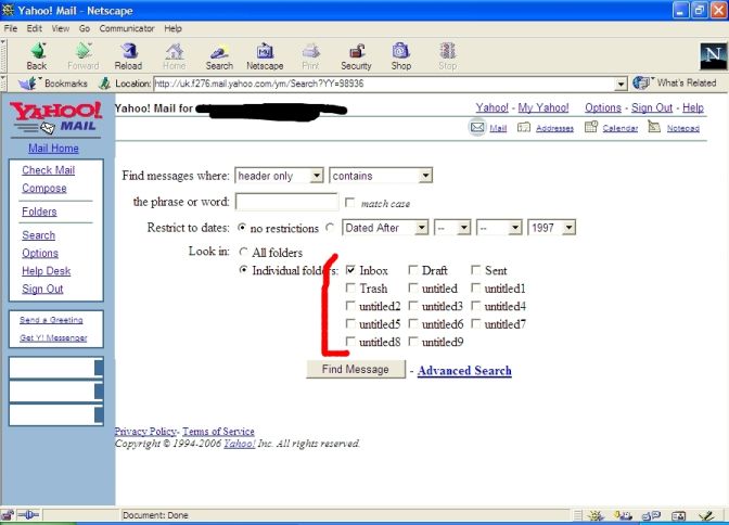 em_te Posted November 15, 2006 Share Posted November 15, 2006 When I do a search on Yahoo! Mail and select a subset of folders and then click "back" on the results page to go back to the search page, the previously checked items are unchecked again, but the search text and dropdown menu items are preserved (not shown in screenshit). Is there a GreeceMonkey script I can use to make the selections saved? Link to comment Share on other sites More sharing options...