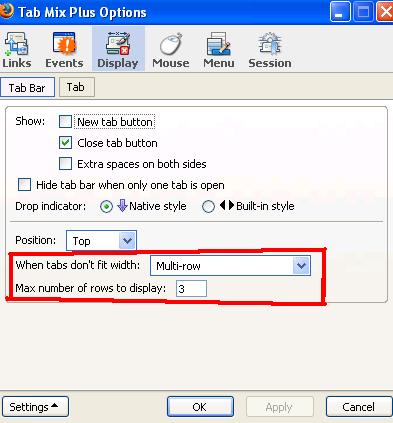 CrisCr0ss Posted February 11, 2007 Share Posted February 11, 2007 It seems tabmixplus although having extension enabled, wont go in multiple rows of tabs instead it just adds a stupid arrow at the right end of the tab bar showing all possible tabs, How do i go back to multirow tabs? Link to comment Share on other sites More sharing options...