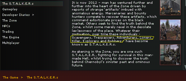 Chode Posted March 2, 2007 Author Share Posted March 2, 2007 does "S.T.A.L.K.E.R." actually stand for anything or is just for dramatic affect? It comes from the storyline involving the main character been involved in a truck accident in the zone. He is found by the dealer, who brings him back to health and starts giving him missions. The only clues to your identity are a tattoo on your arm reading "S.T.A.L.K.E.R.", and a PDA with the mission "Kill the Gunslinger". GSC have said we will learn what it means later in the game. how many engines did this game go through? Just the 1, GSC's own "X-Ray" engine. Though it has two renderers: DirectX8 and DirectX9. I remember trying the leaked Alpha; I think it was now 2 years or so ago...at least back then it had the graphics going, but today it doesn't even have that. Its graphics aren't nearly as impressive now, its ship has sailed like half life 2. It missed its boat unreal 3 is here and games need to step up, like crytek. "Mutants" trailer, the last official released trailer from about a week ago. The DirectX9 renderer is simply breathtaking...every last surface is bump-mapped realistically. However, even the DirectX8 renderer is amazing. It all comes down to fantastic level design. Going to miss searching for Chode to find updated stalker news. I love you too, SimplyPotatoes ;) Link to comment Share on other sites More sharing options...
