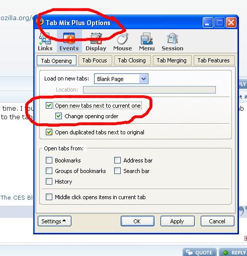 Salgoth Posted July 19, 2007 Share Posted July 19, 2007 Without this block checked TMP will open new tabs at the end of the row. Link to comment Share on other sites More sharing options...