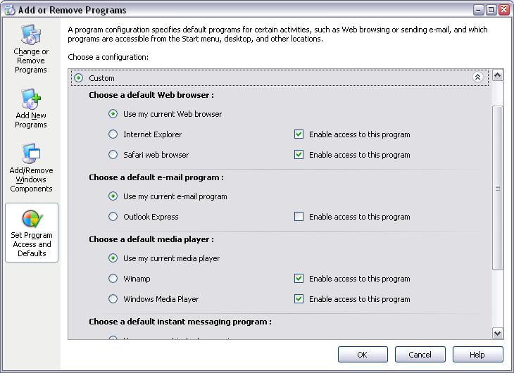 semifamous Posted August 4, 2007 Author Share Posted August 4, 2007 I did too answer the question, but I'll use a picture instead. Where should I check the box that says "Enable access to this program"? I'm a bit slow... I just noticed that my default email client (Thunderbird) also doesn't show up in that list as an option. Link to comment Share on other sites More sharing options...