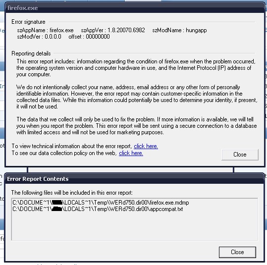 Brodel Posted September 30, 2007 Share Posted September 30, 2007 Hi, lately my Firefox keeps on crashing whenever I go to Digg, it's not right away but it loads slowly and if I open more than two articles in tabs, it often crashes. The only things I can see that have changed are that I've upgraded to Firefox 2.0.0.7, installed bookmark backup (because half my bookmarks vanished after the upgrade!) and the Digg page has been updated. I've tried disabling bookmark backup and switching back to Firefox 2.0.0.6 but still get the same error (pic below). The other extensions I use are Adblock Plus, Better Gmail, Dictionary Search, Download Statusbar, Fasterfox, Hyperwords, Gmail Notifier, IE Tab, Image Zoom, ReloadEvery and Talkback. Although they have all worked fine in the past. If anyone has any suggestions on how to fix it I'd appreciate it as it's getting to be really annoying. Link to comment Share on other sites More sharing options...