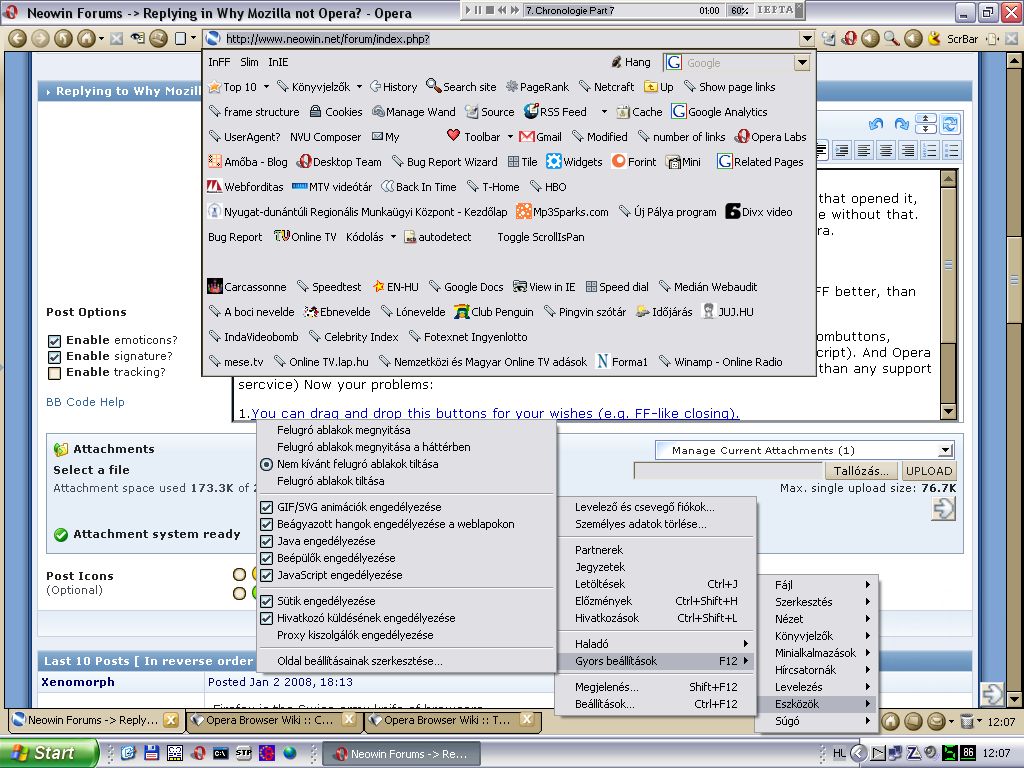 vinczej Posted January 6, 2008 Share Posted January 6, 2008 The only thing I dont like about Opera is when you close a tab it goes back to the tab that opened it, not the one next to it. The content blocker isnt as flexible as AdBlock Plus but I can live without that.Once they fix the tab thing or give us an option to choose then I will prpbably use Opera. Is a fact, that in compatibility (less), in plugin-handling and developing tools (more) is FF better, than Opera. I can see Opera's ?main disadvantage in plugin handling. But in other aspect Opera has much more smooth flexibility (unlike to FF) in skins, custombuttons, layout, and many other things (like UserJavascript). And Opera many helpful sites, like OperaWiki and MyOpera. (My Opera Forum is much more usefule than any support sercvice) Now your problems: 1.You can drag and drop this buttons for your wishes (e.g. FF-like closing). 2. Operas built-in Adblock function is very flexible, I can compare it to FF's Adblock extension. Link to comment Share on other sites More sharing options...