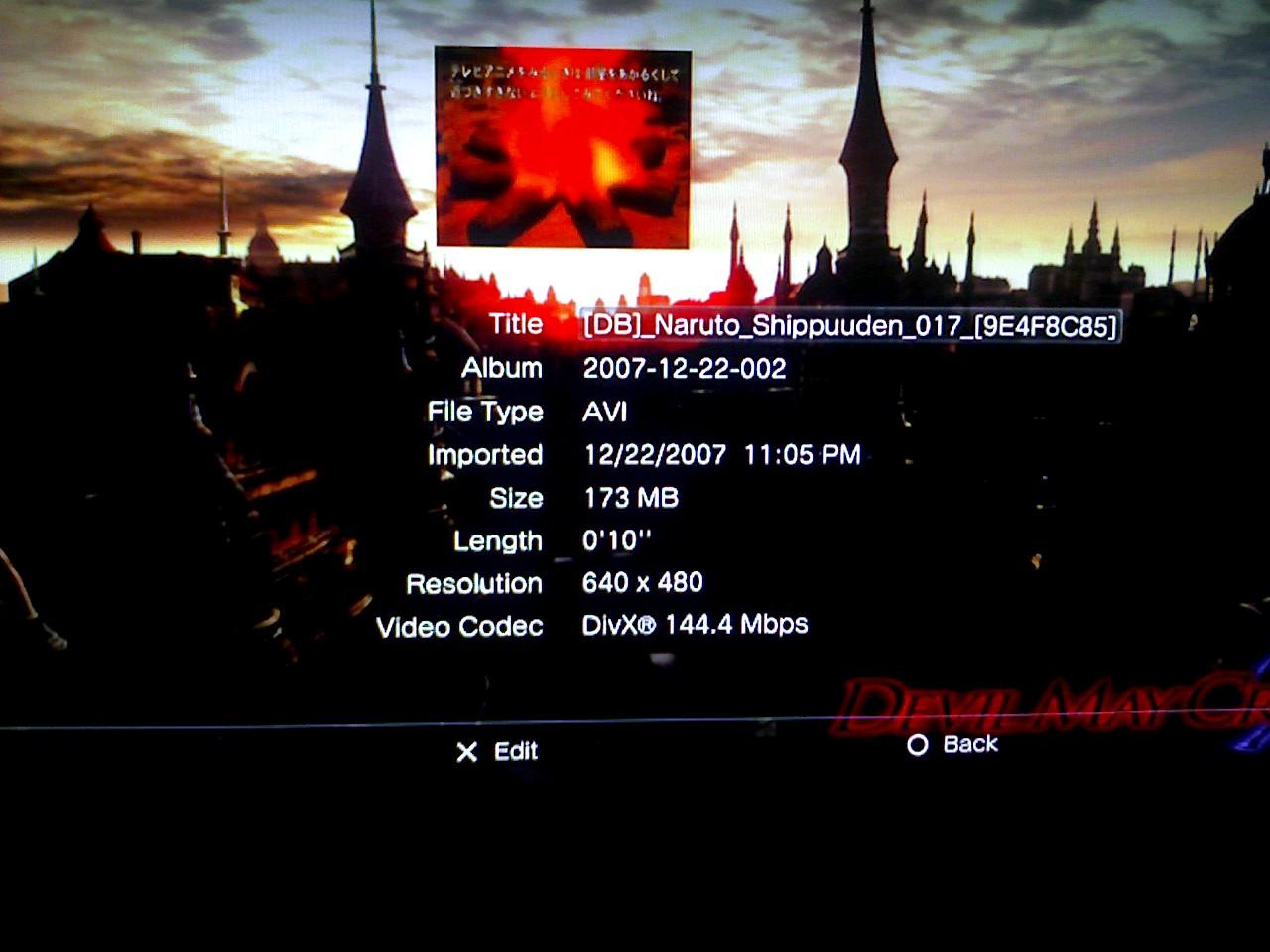 morficus Posted December 23, 2007 Share Posted December 23, 2007 My Naruto anime doesn't work. It plays for about 5 seconds then just stops. Anyone with this issue? So you're not alone on this one... for some reason I'm having the same issue with some of my anime AVI's After copying them to the PS3, the information section shows that the video is only a few seconds long... yet it does display the full file size (+100mb) here are a few pix I took with my phone: I haven't had a chance to try with TVersity with transcoding off since I'm away from home for the xmas season... but I can confirm that it worked just fine via Tversity with transcoding on. But since the PS3 is nativly only seeing the file as a few seconds long... I'm gonna guess that TVersity w/o transcoding will not work... has anyone else ran into this issue, or have any tips on how to get around/fix it? Link to comment Share on other sites More sharing options...