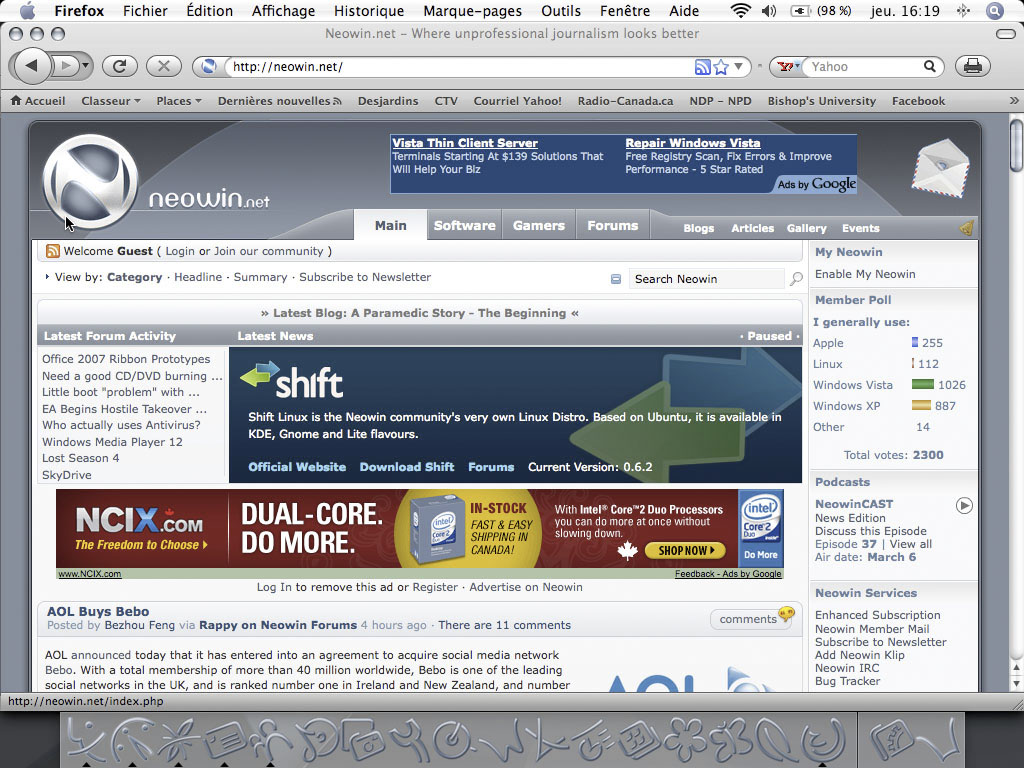 MulletRobZ Posted March 13, 2008 Share Posted March 13, 2008 Can you post a screenshot of Neowin main on your Mac in Fx3b4? Voil?! Link to comment Share on other sites More sharing options...
