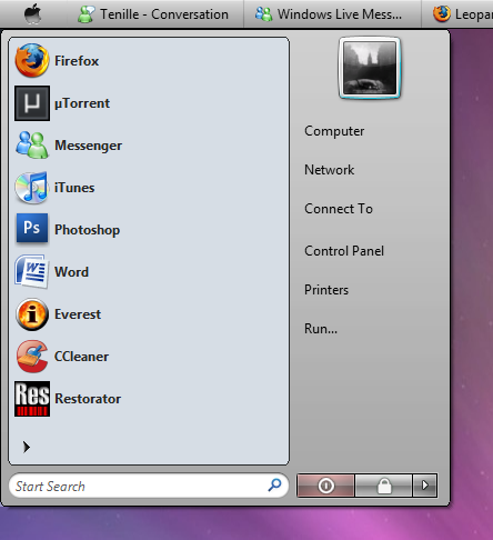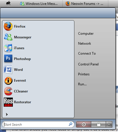 omganinja Posted April 9, 2008 Author Share Posted April 9, 2008 I have a small question since you just showed the start menu, is it possible to remove the space where the picture used to reside? Or will the space always remain? I'll most likely moving the right panel up to the top, but if I cant then I'll be moving the programs list down and putting a banner of some sort at the top. Heres a quick mockup (I know it looks butt ugly, it'll look alot better when I actually make it): Link to comment Share on other sites More sharing options...
