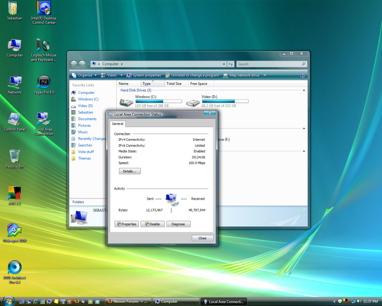 Sebaz Vista Posted April 10, 2008 Author Share Posted April 10, 2008 Light blue removed?How come the 'x' is light blue in the screen shot? Also the outline of the 'Local Area Connection Status' window. Hmmm...? The X is a different type of light blue. It's not pastel light blue like when you hover over files or menus, it's basically the original color with its hue changed dramatically. That's a type of light blue that I like and goes well with the graphite window, but I really dislike the pastel light blue. Link to comment Share on other sites More sharing options...