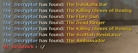Random drop is okay, but getting more than 10 random hats at one time (the chat log is only that big) is one hell of a bug. This happened to some guy few days ago at the GTFOGaming servers.
