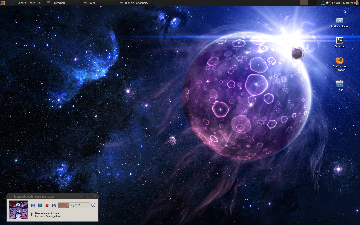 The Angry Bunny Posted October 26, 2008 Share Posted October 26, 2008 GTK: Ubuntu DustIcons: Gnome Brave Thing on the right: Conky Wallpaper Please? I'm absolutely in love with it. Link to comment Share on other sites More sharing options...