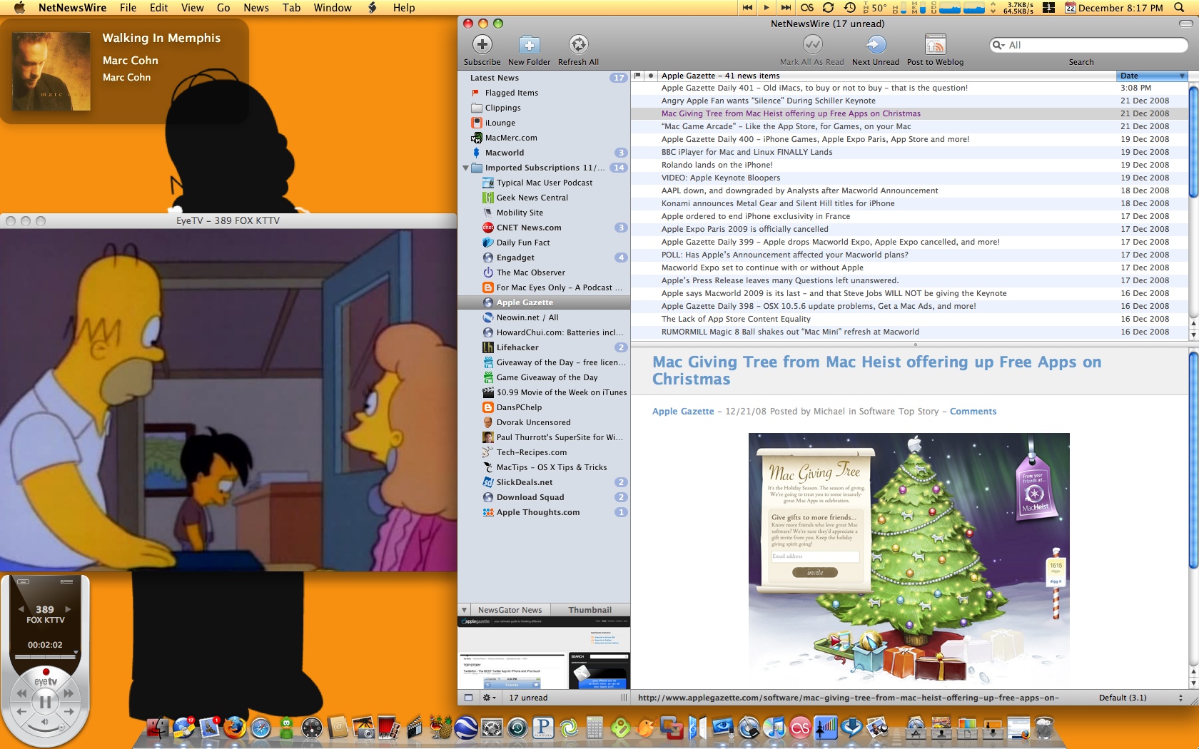 bigdsvideo Posted December 23, 2008 Share Posted December 23, 2008 Here's mine of lately... Oh and just a heads up for those that are looking for a app to display their itunes artwork on the desktop, go to http://givingtree.macheist.com/ for some free apps that they are giving away for Christmas one of them being Synergy 3.3 ( a $14.00 value ) and the other one being a game called Enigmo2 ( a $19.00 value ) along with 2 more to be opened on Christmas day. Of course you do have to register and give them an email address. Link to comment Share on other sites More sharing options...