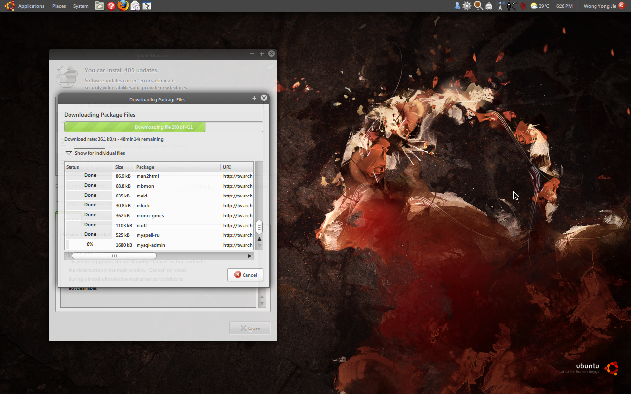 yjwong Posted October 31, 2008 Share Posted October 31, 2008 Just updated using the Alternate CD from Ubuntu 8.04 (: Couple of things to iron out with the switch from the "fglrx" (ATI proprietary) to "radeon" (Open Source ATI driver) driver. Good to know that the "radeon" driver now supports Compiz out of the box with my ATI Mobility Radeon X1400. Mine is obviously not the default interface. And I'm glad that Ubuntu 8.10 supports 3G devices out of the box now (mine's a Huawei E220), so I no longer need the Vodafone Mobile Connect Driver for Linux. Have further 405 updates to download o_o So far so good (: If you would like to know how to upgrade from the Alternate CD (in case you don't have an Internet connection and you don't have a blank CD-R/RW to spare), here's how. mount -t iso9660 <path to ISO image> /cdrom -o loop gksu /cdrom/cdromupgrade That's it (: Link to comment Share on other sites More sharing options...