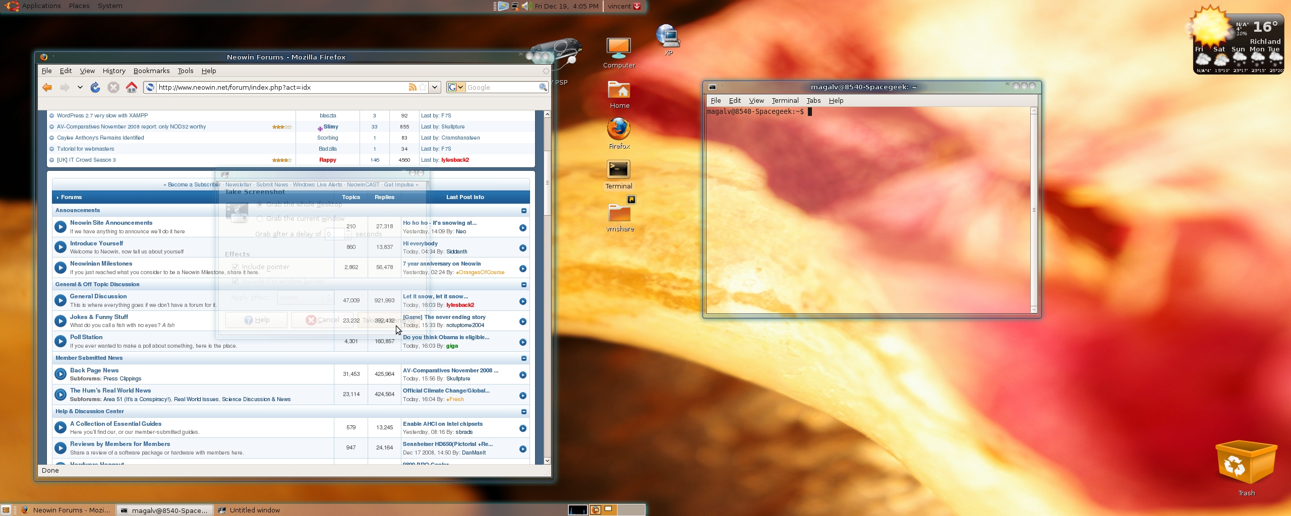 Behemoth Posted December 24, 2008 Share Posted December 24, 2008 OS: Ubuntu 8.10Icons: Human-O2 Wallpaper: A dangerous sunrise on Glies876d Very nice, ripgut. Link to comment Share on other sites More sharing options...