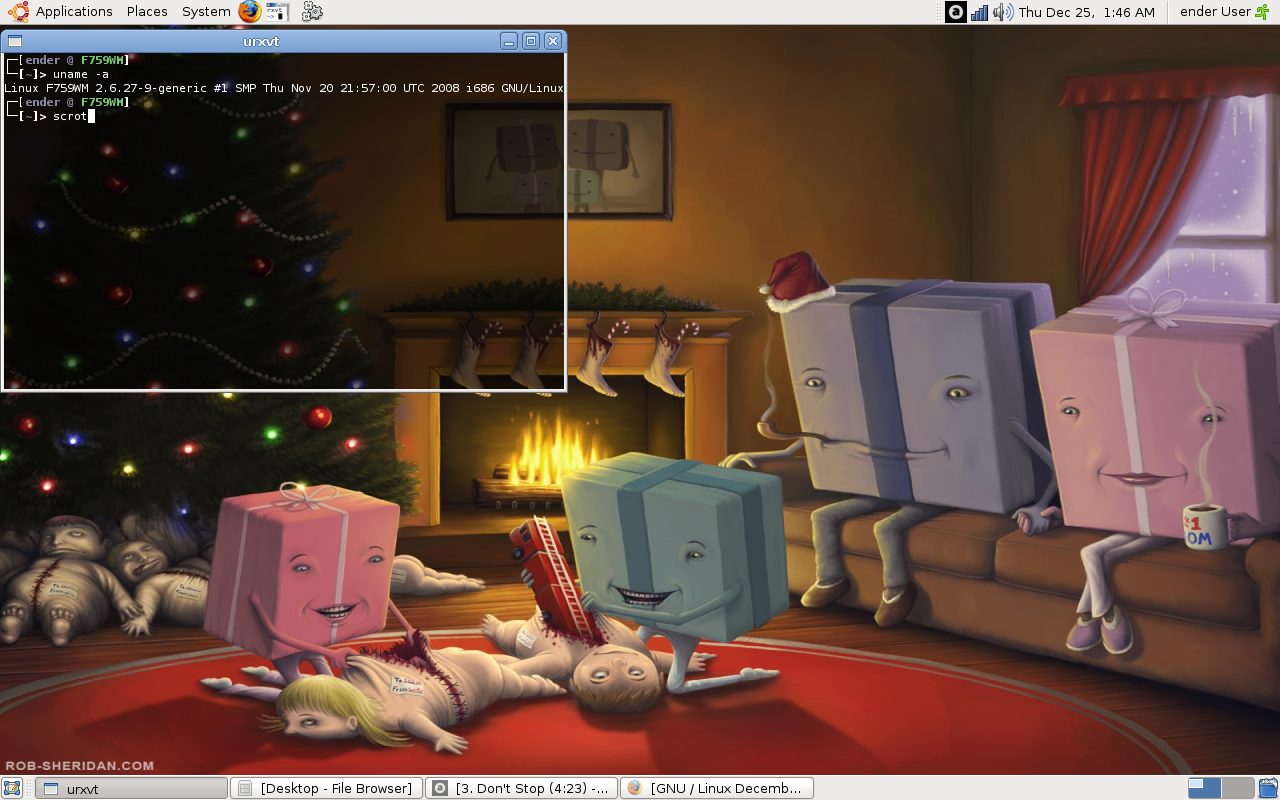 rson451 Posted December 25, 2008 Share Posted December 25, 2008 @3nd3r: What is that wallpaper? It looks... Funny. I want it. It says the source right on the wallpaper itself. Link to comment Share on other sites More sharing options...