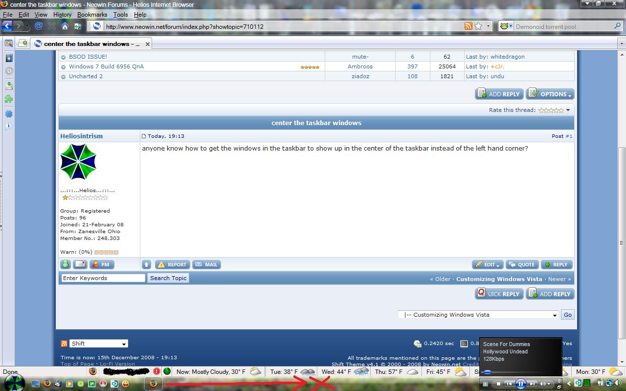 Heliosintrism Posted December 16, 2008 Share Posted December 16, 2008 anyone know how to get the windows in the taskbar to show up in the center of the taskbar instead of the left hand corner? Link to comment Share on other sites More sharing options...