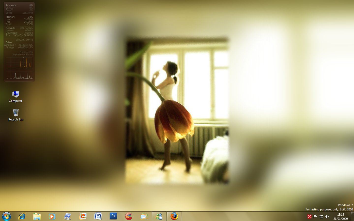 dt Posted January 21, 2009 Share Posted January 21, 2009 Here's mine. After installing the Windows 7 beta a couple days later :) Hi ozgeek, that's a nicelooking desktop! Care to share the wallpaper? :) Link to comment Share on other sites More sharing options...