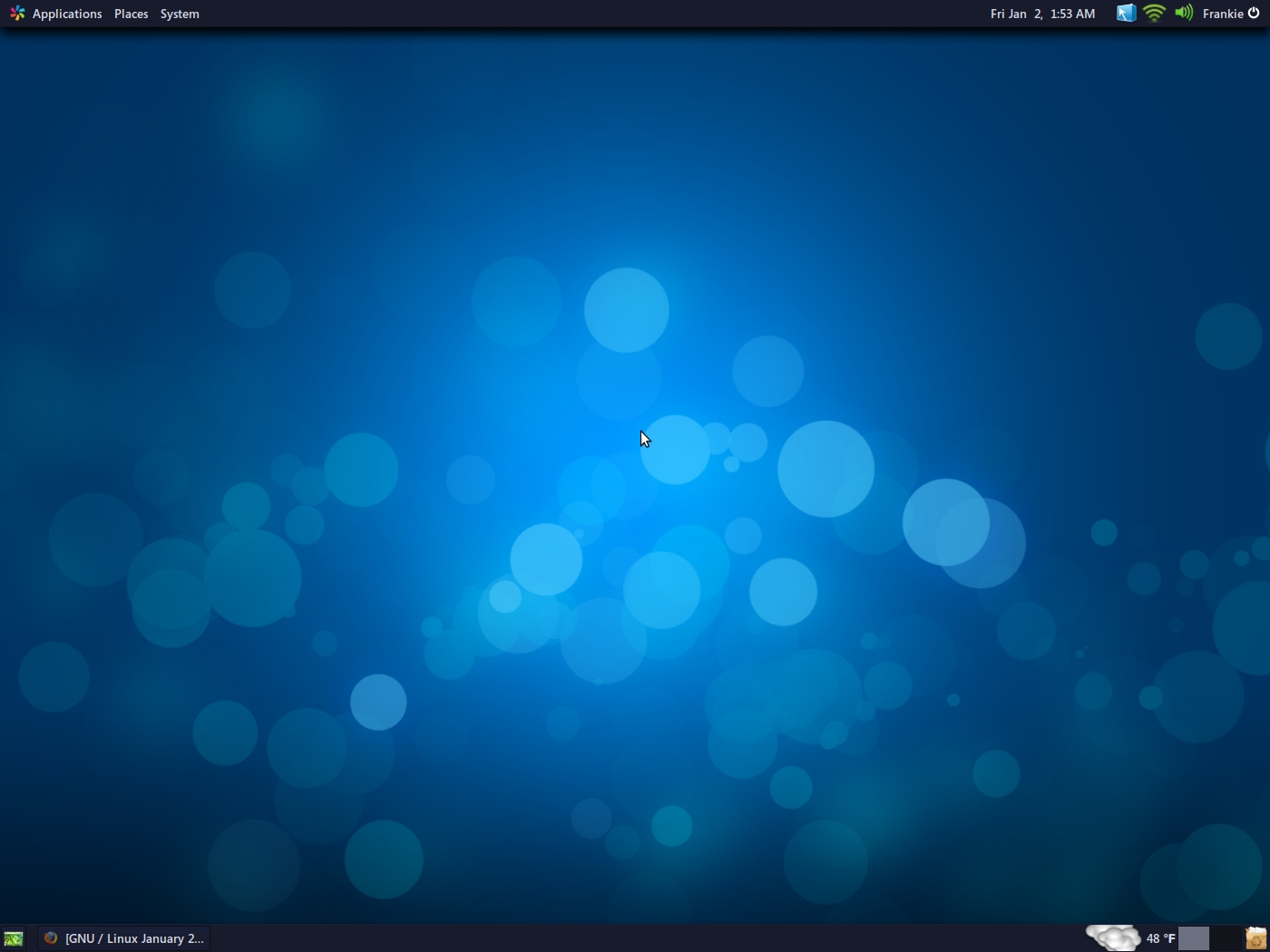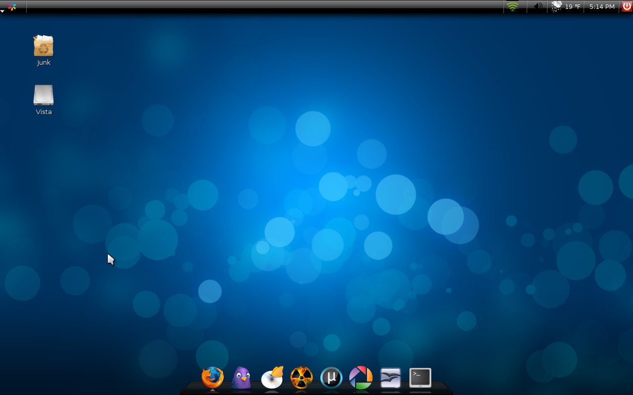 4CxbqFxVnstmA Veteran Posted January 2, 2009 Veteran Share Posted January 2, 2009 Very simple Gnome, with a gradiant and the bottom bar set to transparent. ;) Link to comment Share on other sites More sharing options...