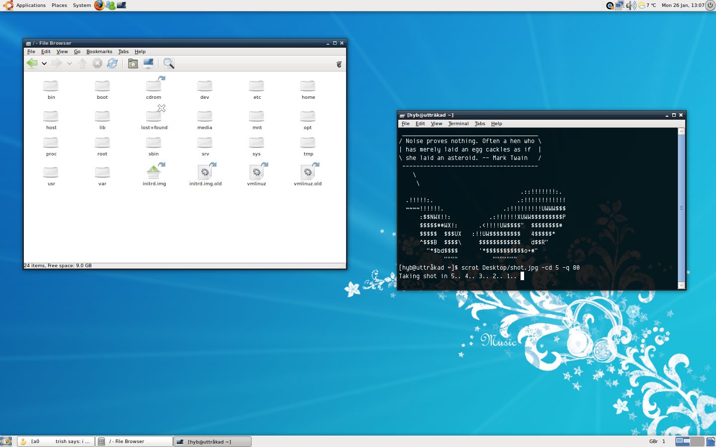 Arite Posted January 17, 2009 Share Posted January 17, 2009 Debian sid (i386): GTK+: Shiki-Brave with Tahoma font Wallpaper: Hilarie Burton - here (edited in GIMP to 1280x1024) Arite. Link to comment Share on other sites More sharing options...