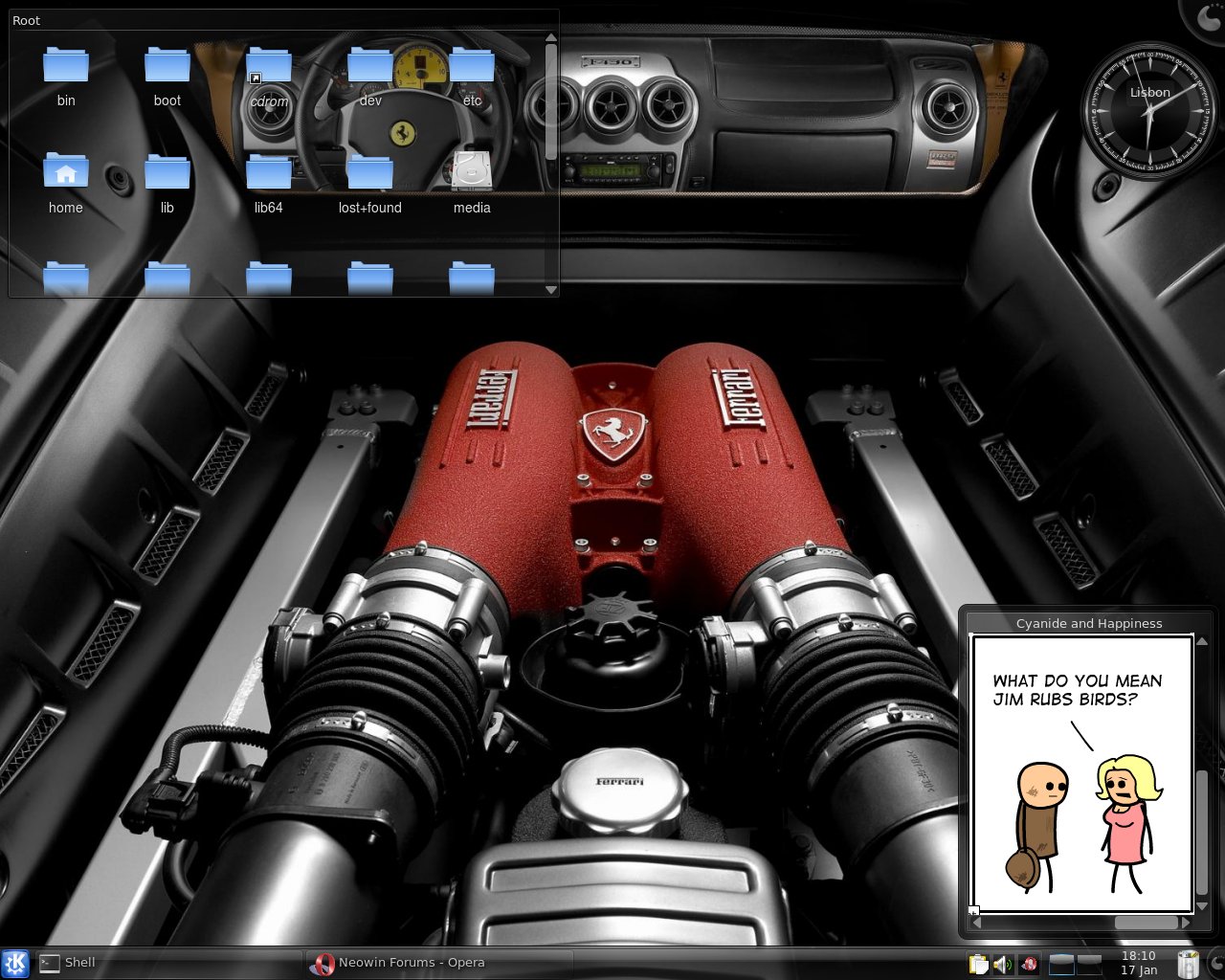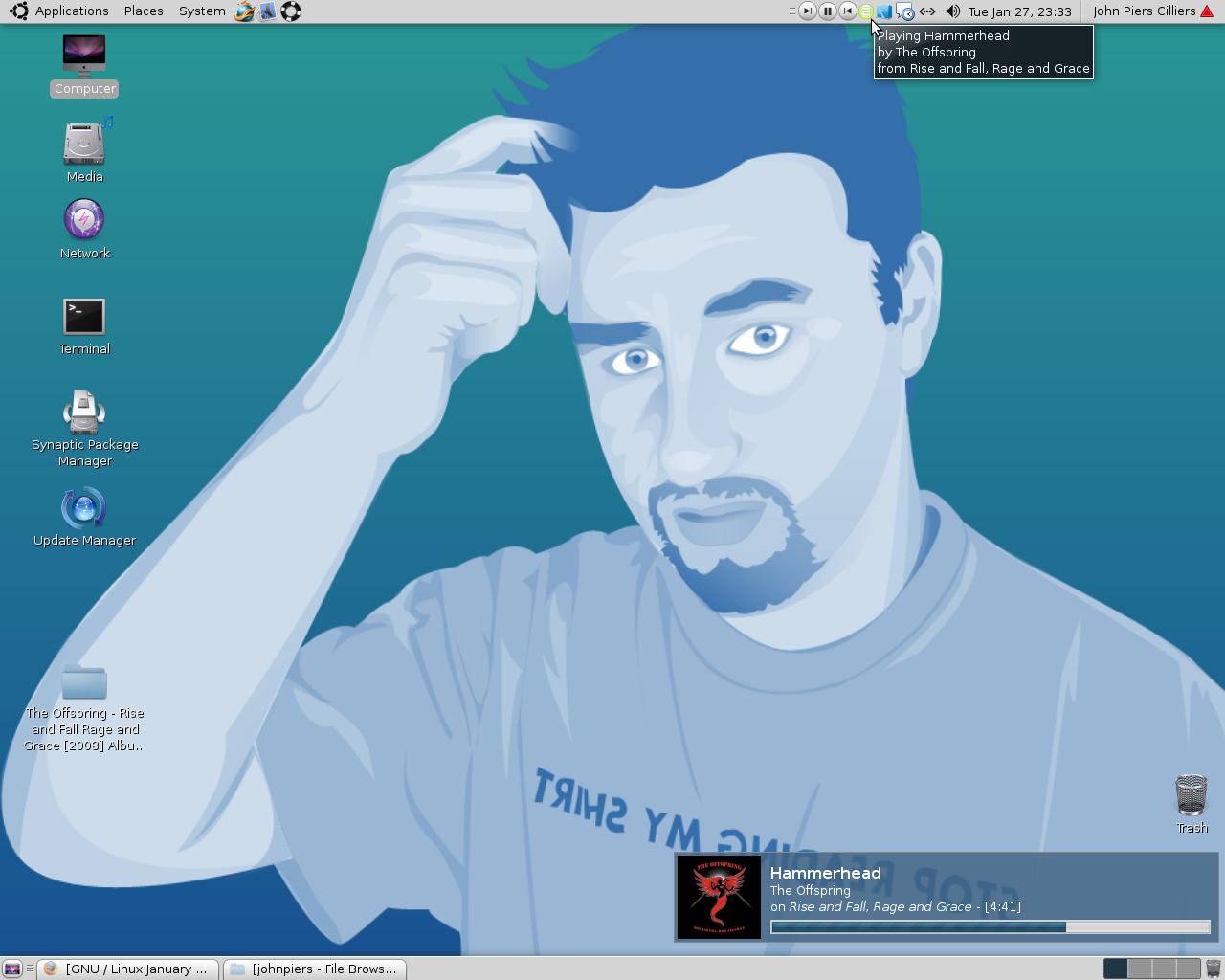 DJD Posted January 19, 2009 Share Posted January 19, 2009 Here is mine: Icon theme: Neon GTK 2.0 theme: Dust Wallpaper: Jessica Alba, can be found at skins.be. Font: Segoe UI Link to comment Share on other sites More sharing options...