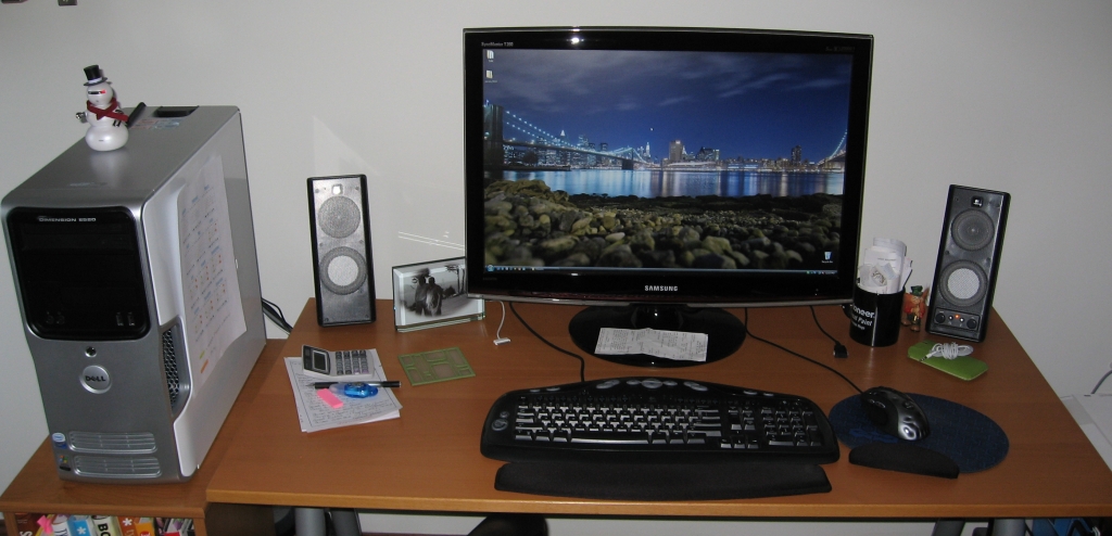 Dark_ph0enix Posted January 1, 2009 Share Posted January 1, 2009 My rat's nest of a workstation. I make no apologies for the mess, as it is a workstation (primarily). :-)I do apologize though for the dark/crummy picture quality. If it works for you, then that's all that matters, right? I'll try and take a piccy or two of my set-up over the weekend - nothing spectacular, truth be told, as it's kinda in a holding pattern, until I can re-jig the room (I'm replacing the sofa, which'll give me a bit more room) Link to comment Share on other sites More sharing options...