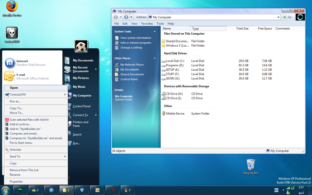 Windows X Posted January 3, 2009 Share Posted January 3, 2009 Windows 7 Beta 1 build 7000 was leaked as usual and I've got chance to toy around with it for a while. Well, Superbar UI is kinda slim and doesn't take space for each taskbar item so I decided to make some ports to Windows XP visual style based on Windows Vista's Aero visual style. This is demonstration version for testing only so I'll include only one theme called Aero which is ported Windows Aero view with default shellstyle mode. If this theme rocks, I'll do basic and more ports (maybe Seven Transformation Pack if there's enough demand). To activate Superbar, double click on "setup.reg" file and click Yes -> OK. If you want to restore to default settings, double click on "restore.reg" file and click Yes -> OK. You need to restart or logoff and logon again to make changes. P.S. Since Windows 7 uses many special effects for rendering resources in UI (which means what you see in UI isn't what you can get as raw materials), I won't replicate impossible stuff for fancy (like colored taskbar button) but keep in standard manner that I prefer. Windows_Seven.zip Link to comment Share on other sites More sharing options...