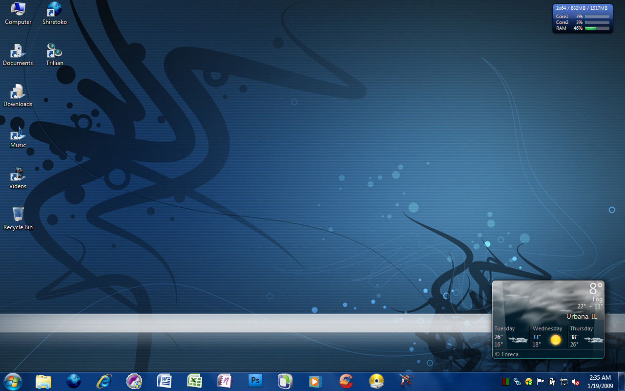 atleeit Posted January 18, 2009 Share Posted January 18, 2009 It's one of the walls from the Japanese install if anyones wondering, and I normally hide the superbar! I like your huge recycle bin man is that a gadget for the sidebar? Link to comment Share on other sites More sharing options...