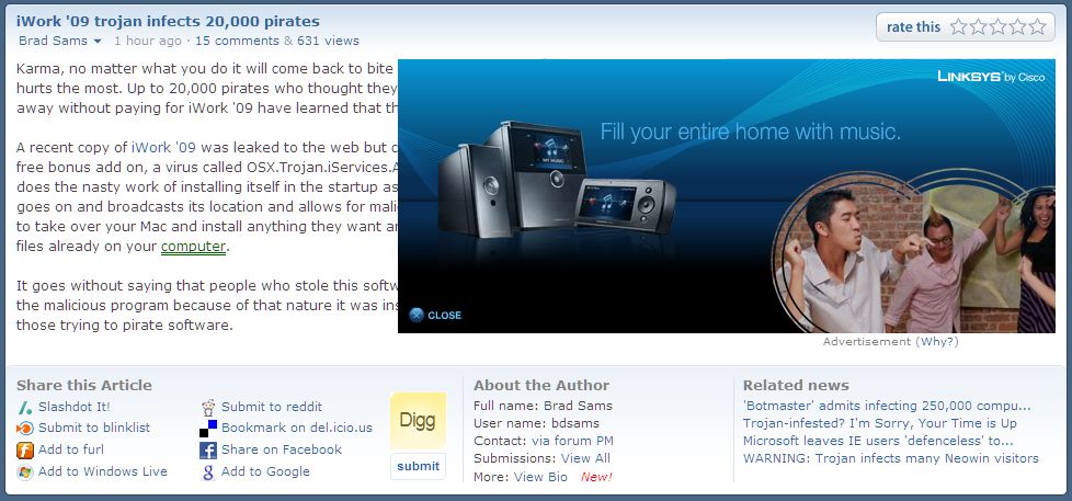 Andrew Lyle Global Moderator Posted January 23, 2009 Global Moderator Share Posted January 23, 2009 I also got this advertisement, but it isn't as bad as it looks, since it only affects the page on loading, and than slides in smaller, and will only look like this when moused over Link to comment Share on other sites More sharing options...