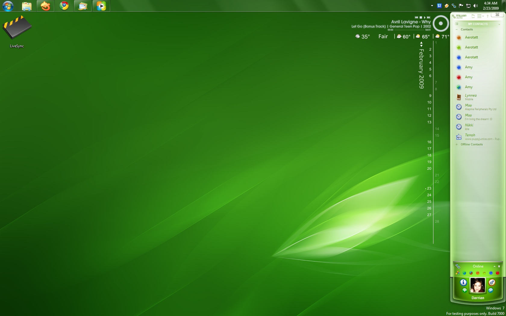 Darrian Posted February 23, 2009 Share Posted February 23, 2009 Hi,could you tell me what is the name of the audio and weather gadget in your desktop?? thanx The audio control is CD Art Display. I got the skin off Deviantart http://sorez.deviantart.com/art/Nay-os-Kor...splay-109686290. The weather is a Avedesk/Sysstats gadget that I've modified a bit (I changed it even more since the screenshot). I did so much digging around for it (and still didn't find the exact one I was looking for) that I don't remember where I got it, but I think you can find it in the gallery on the Sysstats website. Link to comment Share on other sites More sharing options...