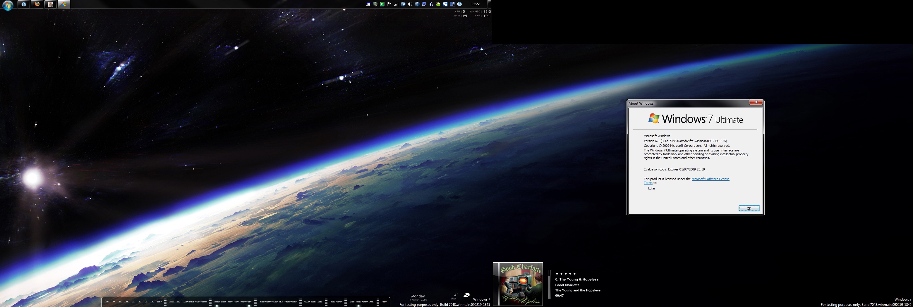 Synergiance Posted March 9, 2009 Share Posted March 9, 2009 Mine: Windows Vista: Windows 7: New 7048 install: Link to comment Share on other sites More sharing options...