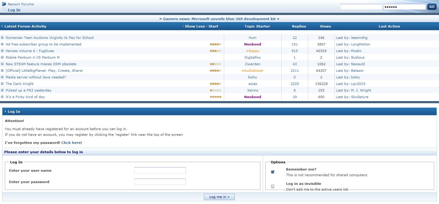 leesmithg Posted March 25, 2009 Author Share Posted March 25, 2009 (edited) My favourites is via =summeries, which I prefered, however if that cuts out the long winded login then ok, thanks. www.neowin.net/index.php?view=summaries is what I have used for a long time, I will change the link to what your suggest. Still creates errors. If you click login you still get two login boxes anyway. So I will have to do it manually. Edited March 25, 2009 by leesmithg Link to comment Share on other sites More sharing options...