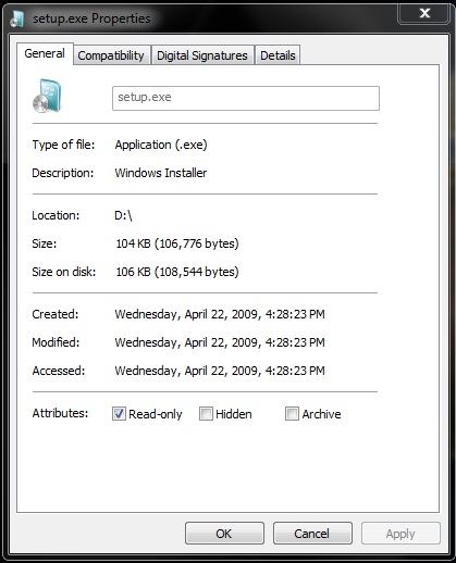 Subject Delta Posted April 27, 2009 Author Share Posted April 27, 2009 ahh well that just sucks ! some people just live to be assclowns Yep and the hysteria over 7 makes it an wasy target. The MD5 of the infected image is 838F96D945C9554835A96CF41DEC9453 Hi FrankWhat is the size of your setup file and has it a digital signatures? Here's a screenshot of the properties page Link to comment Share on other sites More sharing options...