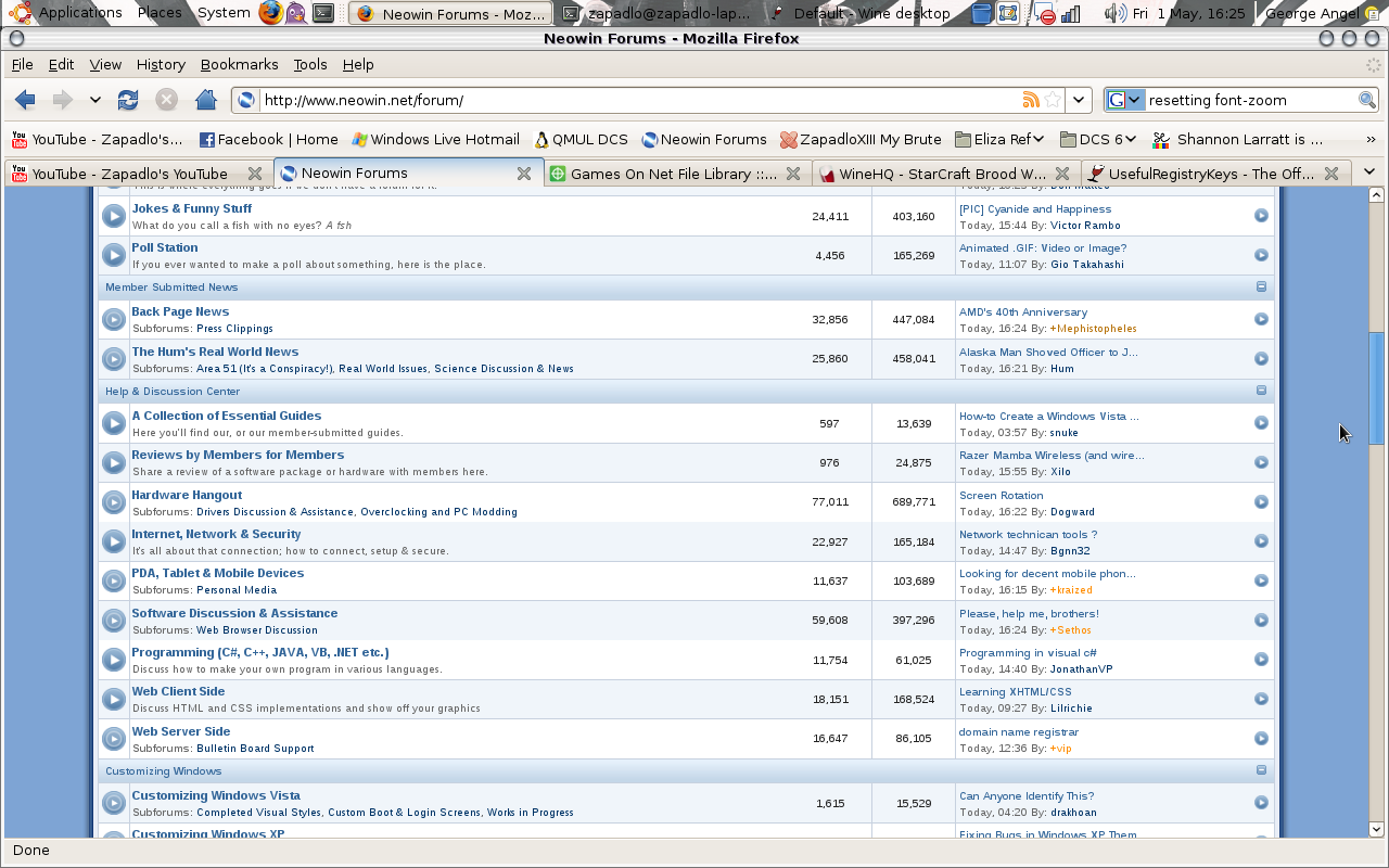 Timan Veteran Posted May 1, 2009 Veteran Share Posted May 1, 2009 Mind taking a screenshot for us? Also try resetting the font-zoom in your browser (might of changed it by mistake). Link to comment Share on other sites More sharing options...
