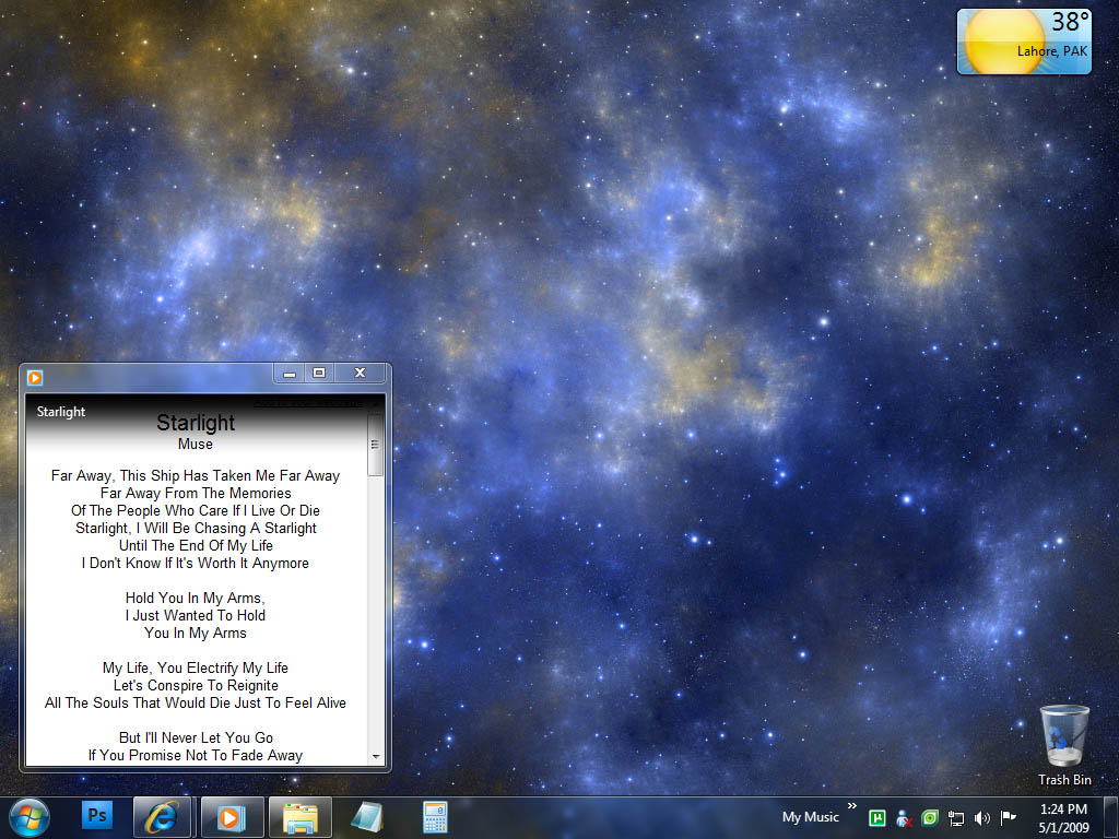 Zain Adeel Posted May 1, 2009 Share Posted May 1, 2009 herez mine for may.. Theme = Aero Win7 Icons = Default Wallpaper = Cosmos Pack from www.deviantart.com sorry dont have the exact link search for it. Software = Lyrics Plugin for WMP :) Link to comment Share on other sites More sharing options...
