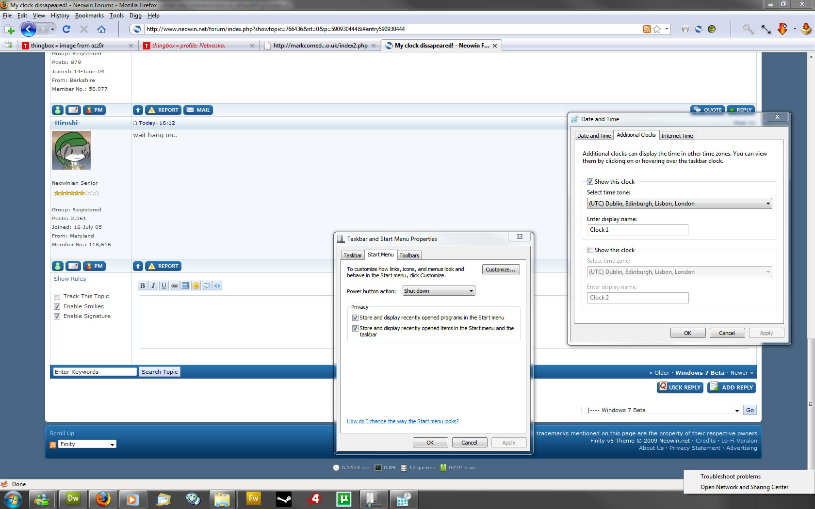 azz0r_wugg Posted May 1, 2009 Author Share Posted May 1, 2009 It randomly disapeared, I don't think anythink triggered it. I'm working, I go to look at the time and its not there! The clock, network icon, sound icon, etc theyre all there, I can right click them. Link to comment Share on other sites More sharing options...