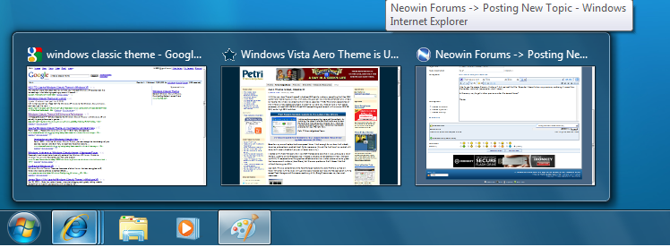 Denis W. Veteran Posted May 2, 2009 Veteran Share Posted May 2, 2009 The thumbnails take advantage of an API that allow it to grab a composited window's output and render it in realtime. Of course this needs the DWM, so they'd have to code in a hack to screenshot windows while using Basic or Classic. But given how relatively few users will encounter Basic or Classic, they won't bother. There are a few freeware taskbar thumbnail utilities out there that emulate this on XP, and I assume also Vista and 7 while using Basic or Classic. Link to comment Share on other sites More sharing options...
