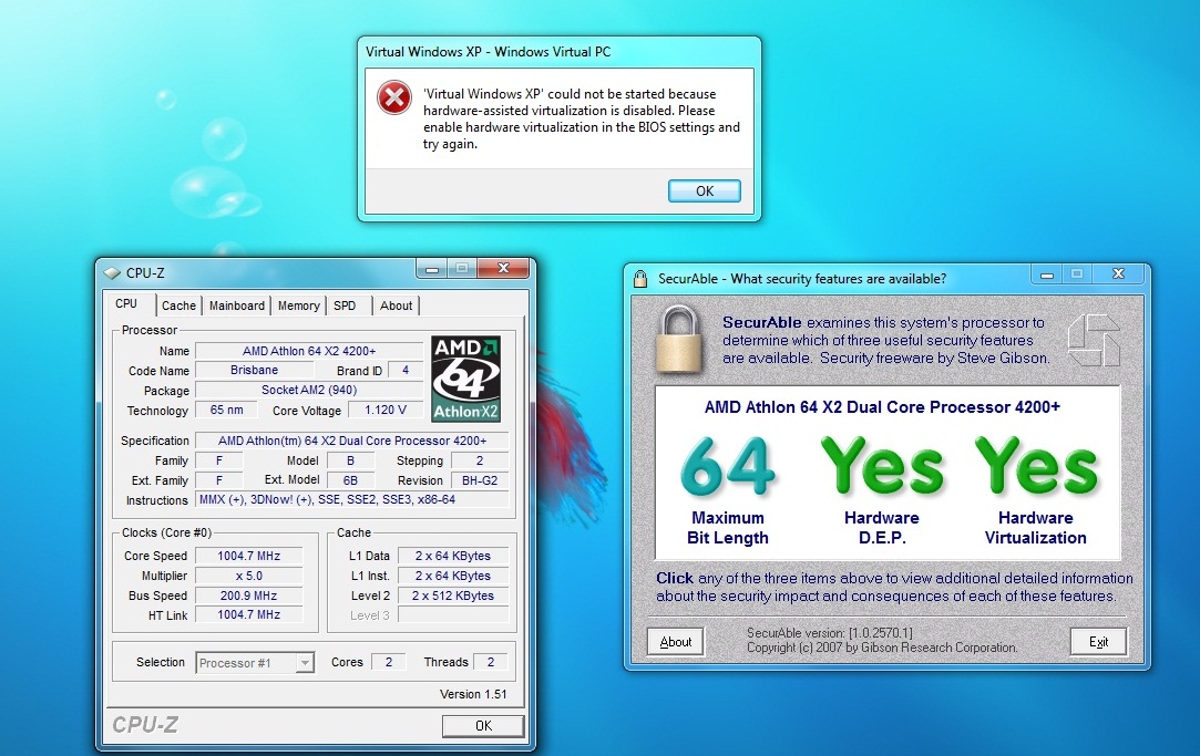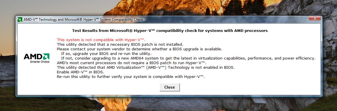 Southern Patriot Posted May 5, 2009 Author Share Posted May 5, 2009 (edited) Disable the Viertualisation option in the bios and then restart the PC and then renable it and then restart the PC. Tried that too. Even with the absolute latest version of the BIOS for this motherboard (the Foxconn BIOS, not the crappy eMachines BIOS). It turns out that Securable doesn't actually check that the SYSTEM supports virtualization, only that the model of CPU does. AMD has a utility that actually checks the BIOS, and it reports that it isn't enabled. Oh well, time for a new motherboard. I doubt many businesses buy emachines, and since this feature is not really intended for the home user because, as it is right now, most applications that home users use are already compatible with Vista/Win 7. I have a feeling that this little problem isn't limited to eMachines (yeah, it seems to be a pretty prevelant problem, if this Google search is any indication: http://www.google.com/search?q=amd+hyper-v...amp;startPage=1 ). Either way, they should have made this use virtualization if the system supported it (for best performance) but revert to not using it if the system didn't support it. Edited May 5, 2009 by roadwarrior Link to comment Share on other sites More sharing options...
