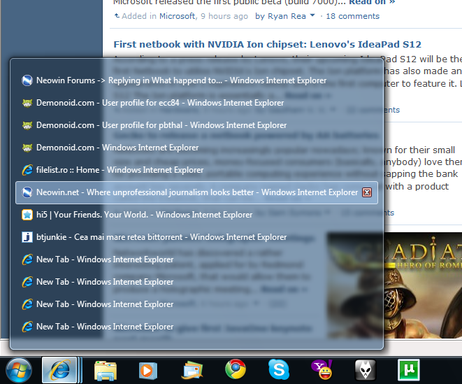 darkmanx21 Posted May 26, 2009 Share Posted May 26, 2009 That happens when you "hover" over IE with too many windows open. It's not on the Jumplists that occur with the right-click. Link to comment Share on other sites More sharing options...