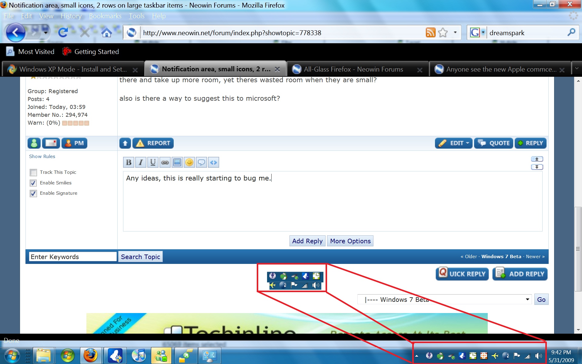 ryan_the_leach Posted May 30, 2009 Share Posted May 30, 2009 Does anyone know if its possible to show 2 rows of notification icons, with large taskbar icons? seems to me a slight flaw as it would be useful to save wasted space by doubling up, as large sized icons look out of place there and take up more room, yet theres wasted room when they are small? also is there a way to suggest this to microsoft? Link to comment Share on other sites More sharing options...