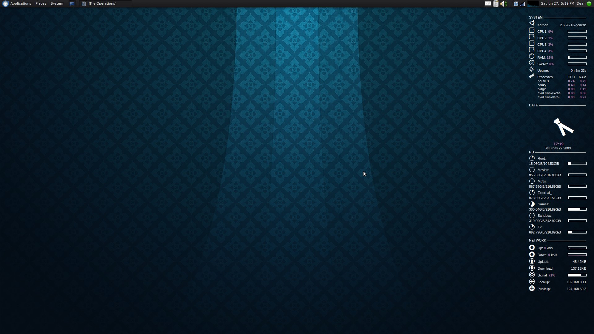 EvilDMT Posted June 27, 2009 Share Posted June 27, 2009 @redfinger Color-Conky which you can get at Gnome-Look.org Link to comment Share on other sites More sharing options...