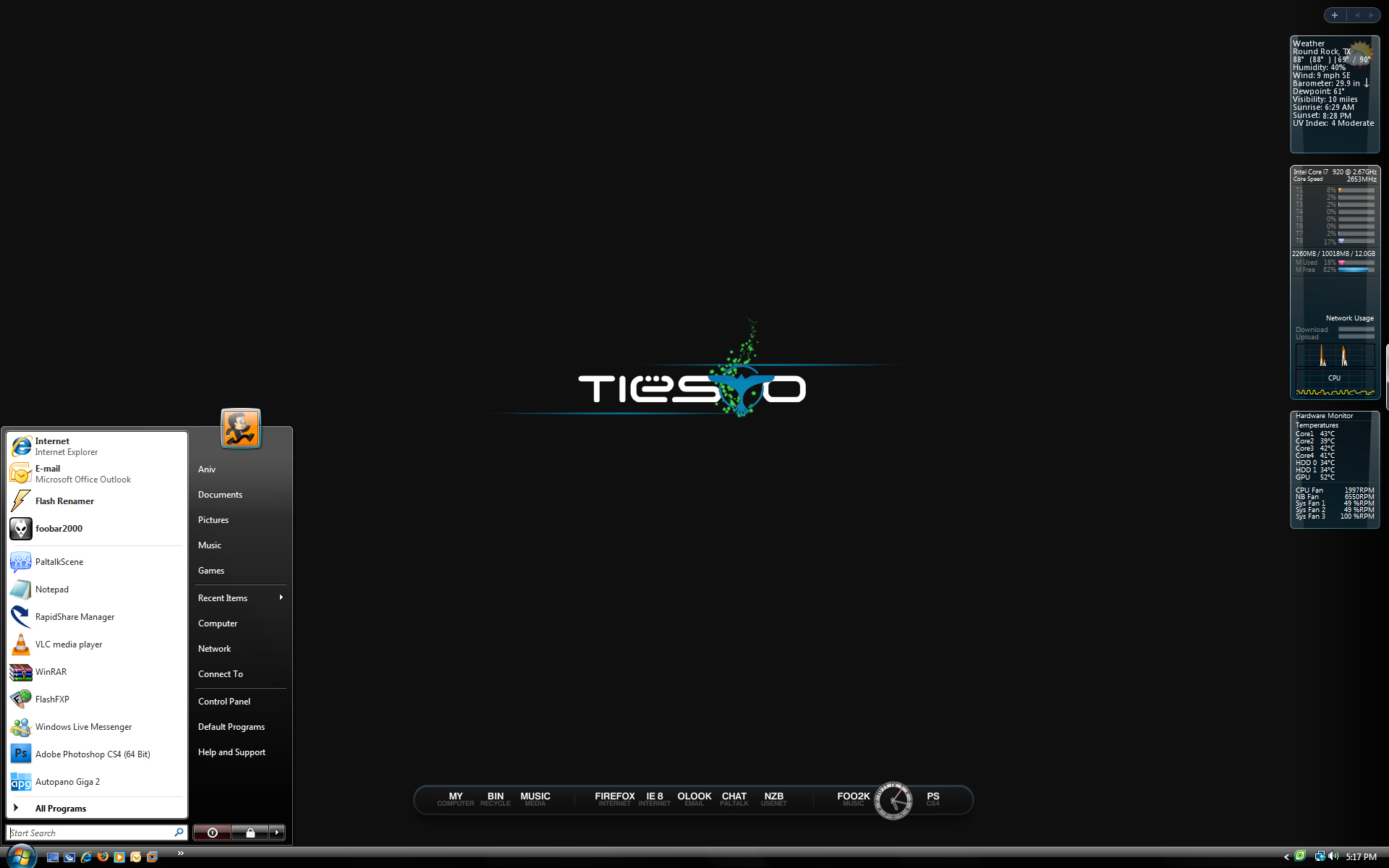 dewaaz Posted June 1, 2009 Share Posted June 1, 2009 Mine for May/June: Info: - Far left small icons: My Computer and Show Desktop - 2nd icon grouping: Drives (System, Documents, Pictures, Music, Movies and TV Shows, Misc.) - Big icons: Commonly used programs - Program menu: Start menu (functions the same - installed apps automatically added without having to do anything manually) - Far right menu: Other start menu functions OS: XP SP3 VS: Clearlooks 0.6 (TB Variant) Icons: Tango Taskbar, etc.: (Almost) all done natively Calendar: Rainlendar - custom mod of Tangoish Weather: Rainmeter - custom mod of moxaweather. For those interested: tutorial coming soon Link to comment Share on other sites More sharing options...