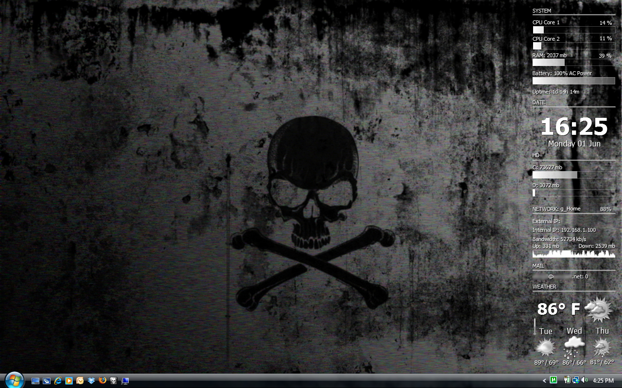 `ghost Posted June 1, 2009 Share Posted June 1, 2009 (edited) skull_grunge_wallpaper with a simple Samurize config Edited June 1, 2009 by `ghost Link to comment Share on other sites More sharing options...