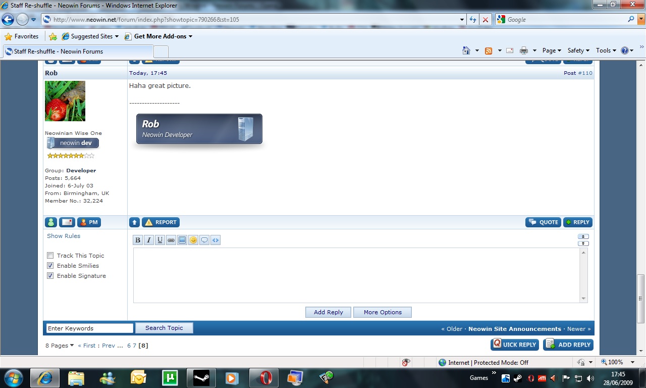 Fred Derf Veteran Posted June 29, 2009 Veteran Share Posted June 29, 2009 It could be his skin and thus he might want to set it to Finity (or at least tell us what you have been using). Someone mentioned MSIE8, I haven't tested anything with that but presumably the devs have. It could be a standard editor vs real-text editor issue. I use the standard editor as the default. As someone already mentioned you can have a quick reply open automatically (this is cookie-based so you may need to do this on every computer you use to connect to Neowin with). Link to comment Share on other sites More sharing options...